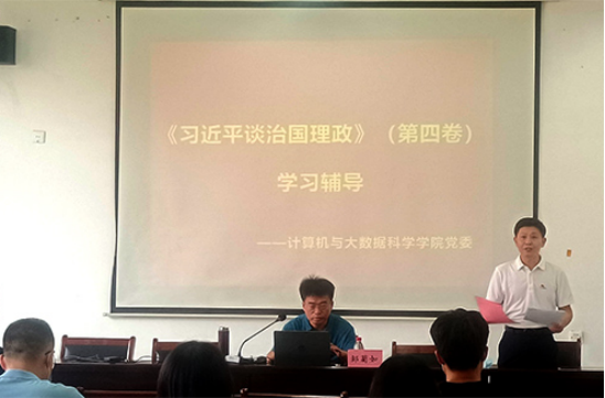 为进一步学习好贯彻好《习近平谈治国理政》第四卷,引导学院广大党员干部群众学有所思、学有所悟、学有所获,切实把学习成果转化为做好工作的实际成效,9月28日下午,william威廉中文在文友楼424召开学习贯彻《习近平谈治国理政》第四卷专题宣讲报告会。校马克思主义学院马克思主义中国化教研室主任邹菊如教授应邀作辅导报告。计算机学院党委书记袁宜如主持报告会。