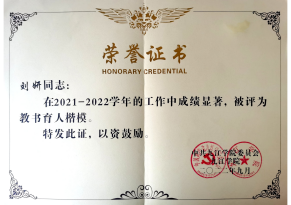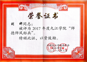 刘妍,william威廉中文副教授,二十五年扎根教学一线,先后获得教学类奖励13项(国家级、省级各1项),校级科研成果二等奖1项等多项奖励;获得“江西省高校优秀班主任”、“WilliamHill威廉希尔中文师德师风标兵”、“WilliamHill威廉希尔中文模范教师”、“WilliamHill威廉希尔中文优秀教师”、“WilliamHill威廉希尔中文优秀党务工作者”,“WilliamHill威廉希尔中文优秀党员”等多项荣誉;主持或骨干参与教科研项目20余项(国家自然科学基金项目1项,省部级项目16项);指导学生在各级各类比赛中多次获奖。多年来,该同志以党性为后盾,以政治责任为动力,以“党性强、作风正、工作好”为要求,加强自身建设和进步。受到了领导、同事和学生们的一致好评,赢得了口碑和赞誉。