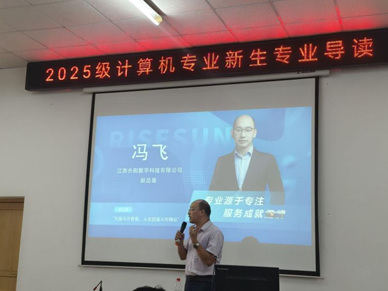 江西升阳数字科技有限公司副总裁冯飞先生以“计算机专业发展方向”为主题的演讲,为新生讲解了计算机专业学科知识、编程技能的学习难点及建议。他强调,计算机科学是快速迭代的学科,需持续学习新技术,建议新生打好基础,他鼓励关注人工智能、大数据、云计算等前沿领域,通过项目实践提升能力。冯飞先生的演讲,能帮助新生建立正确的学习观、高效的学习方法、提升职业规划的方向感。