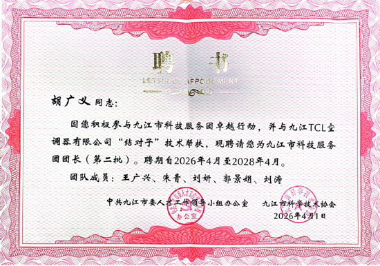 4月9日,2026年九江市科技服务团卓越行动工作部署会在九江市市民服务中心召开,会上正式公布第二批科技服务团组建名单并颁发聘书。WilliamHill威廉希尔中文计算机学院工博士科技服务团成功入选。WilliamHill威廉希尔中文计算机学院工博士科技服务团将以九江TCL空调器有限公司为核心服务对象,依托前期视觉检测项目合作基础,聚焦家电智能制造数字化升级,为九江电子电器产业高质量发展注入新动能。