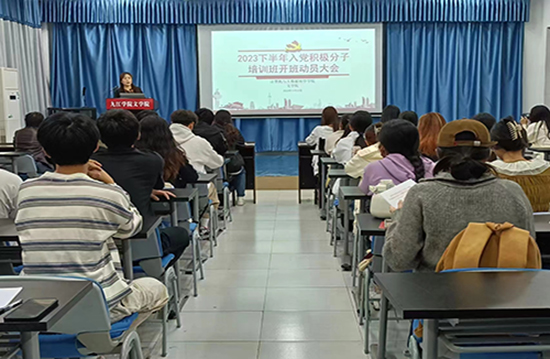 文学院余蓓老师向积极分子们介绍了本期培训班的培训形式、培训内容及考核方式。她指出,本次培训将围绕深入学习习近平新时代中国特色社会主义思想、党的百年奋斗历史、党章党规党纪和党的基本知识等内容进行培训,教育引导广大学员进一步筑牢信仰之基,提升政治觉悟,增强理论素养。并希望在座入党积极分子坚定理想信念,勇担时代重任,从根本上了解党,从感情上热爱党,从行动上追随党,真正践行“请党放心、强国有我”的庄严承诺。
