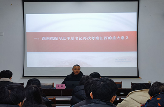 为进一步推动学习贯彻习近平总书记考察江西讲话精神走深走实,12月15日下午,william威廉中文在文友楼424召开深入学习贯彻习近平总书记考察江西重要讲话精神专题辅导报告会。校马克思主义宣讲团成员黄群教授作专题辅导报告,计算机学院党委书记袁宜如同志主持。