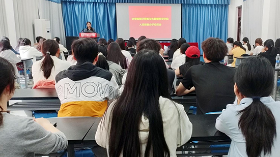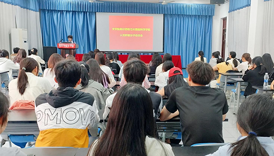 会上,文学院余蓓老师详细介绍了本期培训班课程安排,并给大家上了一堂党课,帮助入党积极分子深化思想认识。同时对全体学员提出具体要求,希望参训学员需严格遵守考勤制度,认真完成学习任务;学习中要注重学用结合,在日常学习生活中发挥先锋模范作用,以实际行动向党组织靠拢。