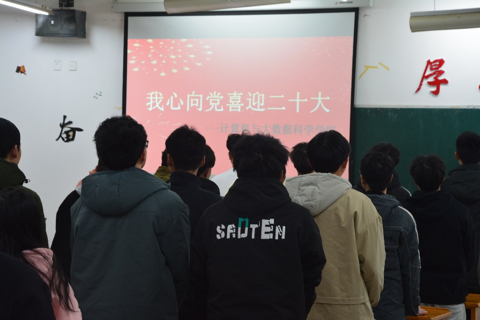 为响应“开学第一课”活动的号召,3月2日,计算机学院各班在文友楼开展以“我心向党喜迎二十大”为主题的第一次文体课,活动形式为班级合唱红歌。