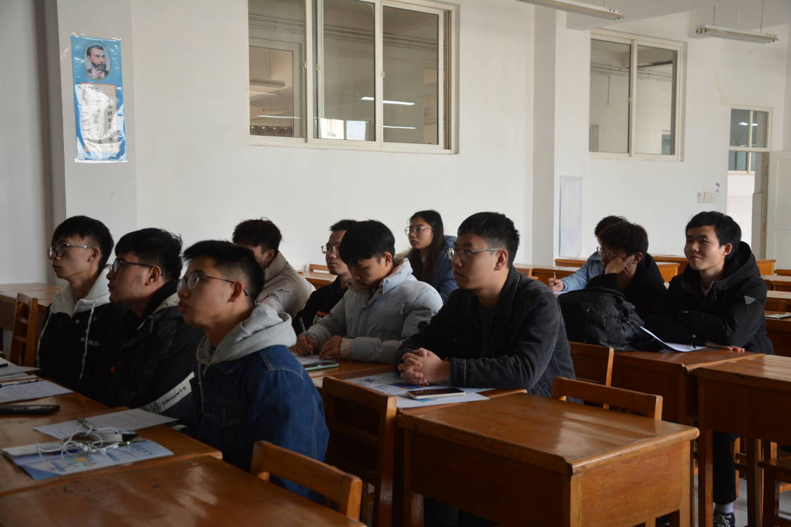 宣讲会开始前,闵涛涛向所有参加的同学分发了企业宣讲传单,并简单地为同学们介绍了深圳淞树技术有限公司的相关情况。他着重强调了公司环境的优美以及工作氛围的融洽,最重要的是,有健全的薪酬体系,完善的培训机制,以及开放的晋升平台。同时每年提供不低于一次的调薪机会,包食宿并且缴纳五险,大大提高了同学们的兴趣。随后,他为大家详细介绍了公司的工作方向以及产业发展,并与同学们积极交流,解决了同学们很多困惑,宣讲会现场气氛达到高潮。