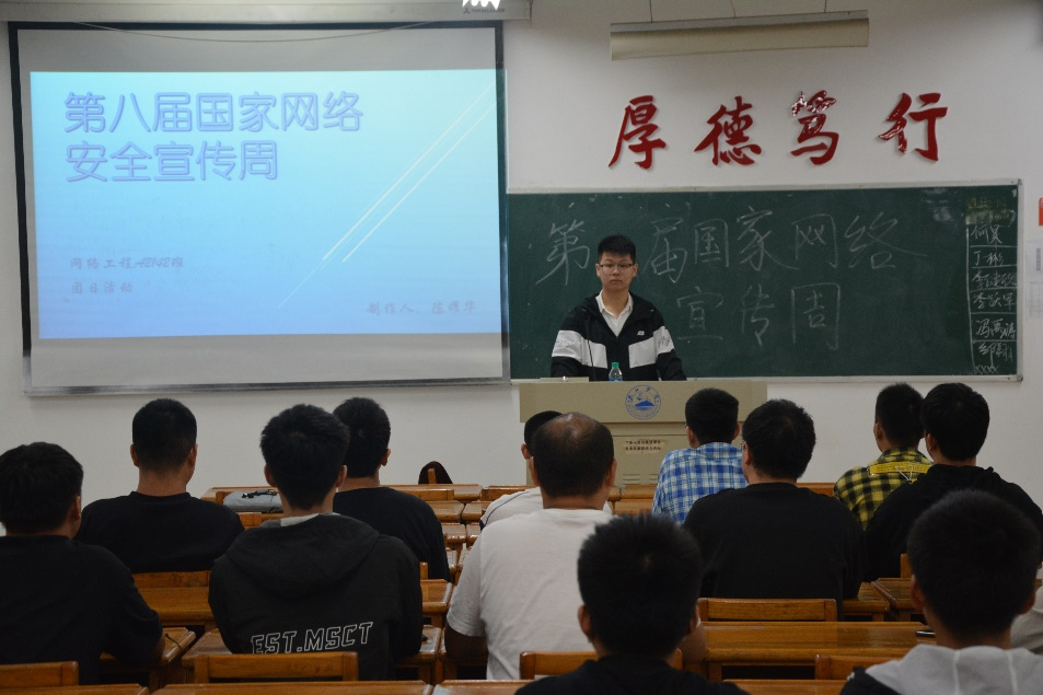 正值第八届国家网络安全宣传周,为了提高学生的隐私安全防范意识和能力,计算机学院于10月13日,在文友楼各班教室开展“第八届国家网络安全宣传周网络安全教育主题团日活动,此次活动由各班团支书组织策划,全体大一学生参加。