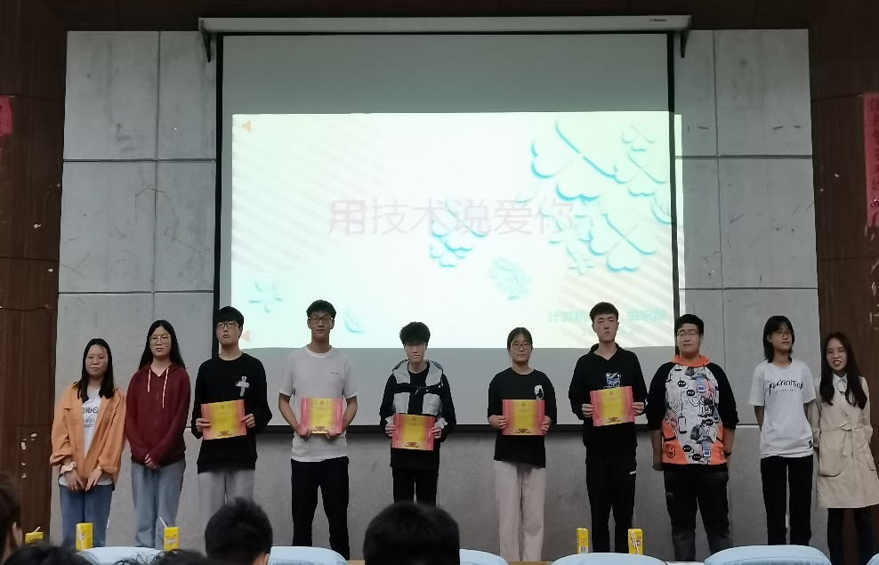 为了进一步丰富校园文化气氛,拓展素质教育阵地,激扬青春,彰显才华,5月20日晚,计算机学院在文友楼报告厅开展“用技术说爱你”活动,本次活动由组织部承办,团委学生干部李世歆、王双宏、许鑫钰、王文燕、陶欣田担任此次比赛的评委,部分大一学生参加。