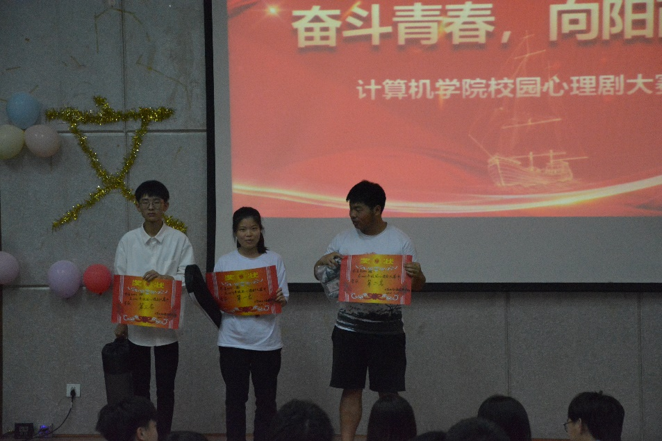 经过初赛的激励角逐,共有五支队伍晋级决赛。比赛开始前由万熠新和韩衍倡演唱的《这一生关于你的风景》便将现场气氛带到了高潮。随后,参赛选手们陆续登场,他们用绘声绘色的台词、生动形象的肢体动作、恰到好处的剧情安排,为同学们演绎了一场场引人入胜的正能量心理剧。在座的同学们都深受启发,比赛在热烈的掌声中结束。随后胥老师对此次比赛做出了总结和点评。经过评委的讨论,A2051班摘得桂冠,A2052班和A2011班分别获得第二名和第三名。最后,由姜欣雨为获奖队伍颁发奖品和证书。