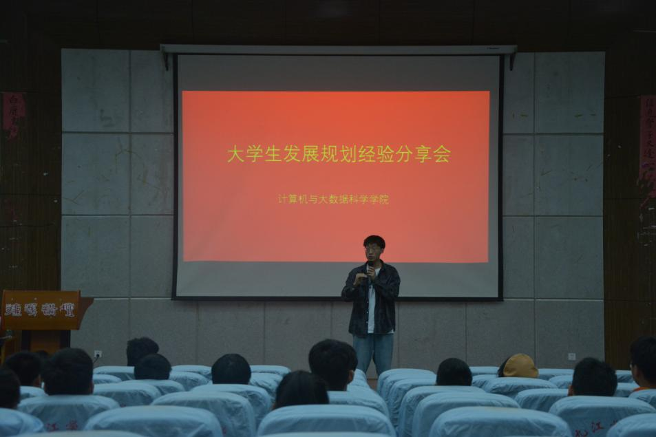 为使同学们学习有动力,工作有规划,4月28日晚7点,计算机学院在文友楼报告厅开展大学生发展规划经验分享会,本次分享会邀请了计算机学院2015级数字媒体技术专业毕业生王吉庆作为主讲人,由团委副书记胥杜鹃主持。