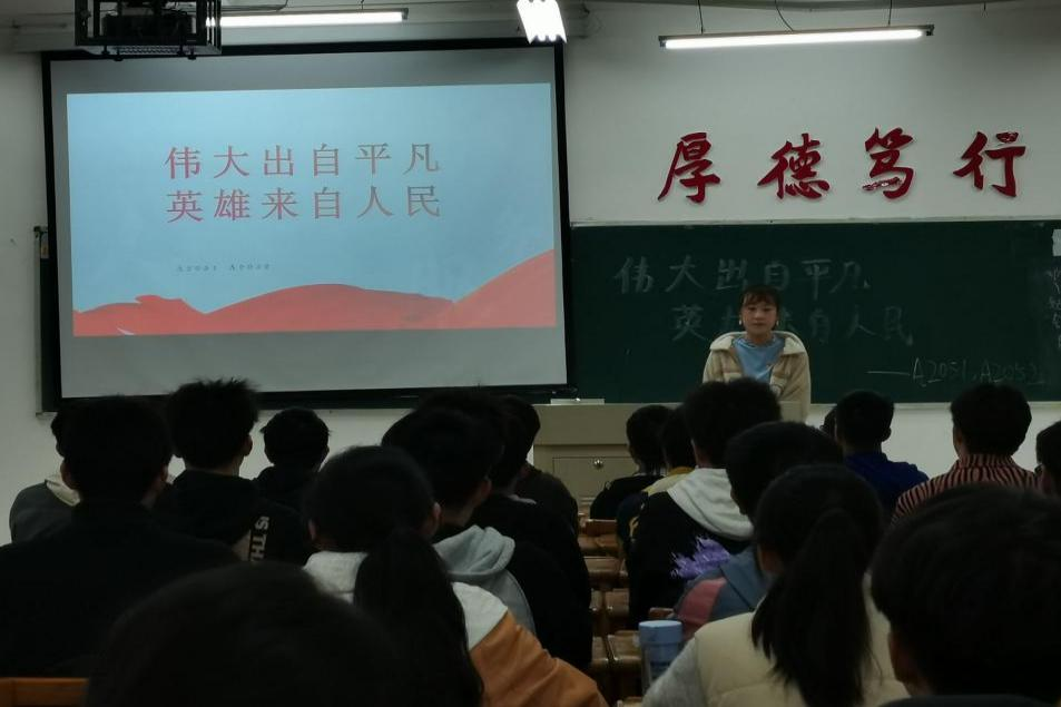 活动中,各班团支书首先带领同学们回顾了疫情期间许多平凡的抗疫英雄,白衣天使高岚、快递小哥汪勇、68岁无名环卫老人……这些英雄不是什么抽象的名词,也不是遥不可及的目标,我们应该从他们的身上学到那些平凡但伟大的英雄精神。活动末尾,团支书号召同学们应在这个风云变幻的大时代中自强不息,传承前人意志,于平凡中崛起,为国家、社会做出贡献。