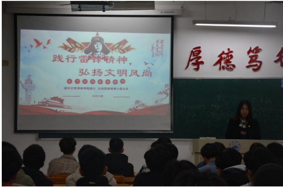 学习雷锋好榜样,忠于革命忠于党。3月24日晚,计算机学院在文友楼各班开展“践行雷锋精神,弘扬文明风尚”主题团日活动。活动由各班团支书主持,全体大一同学参加。
