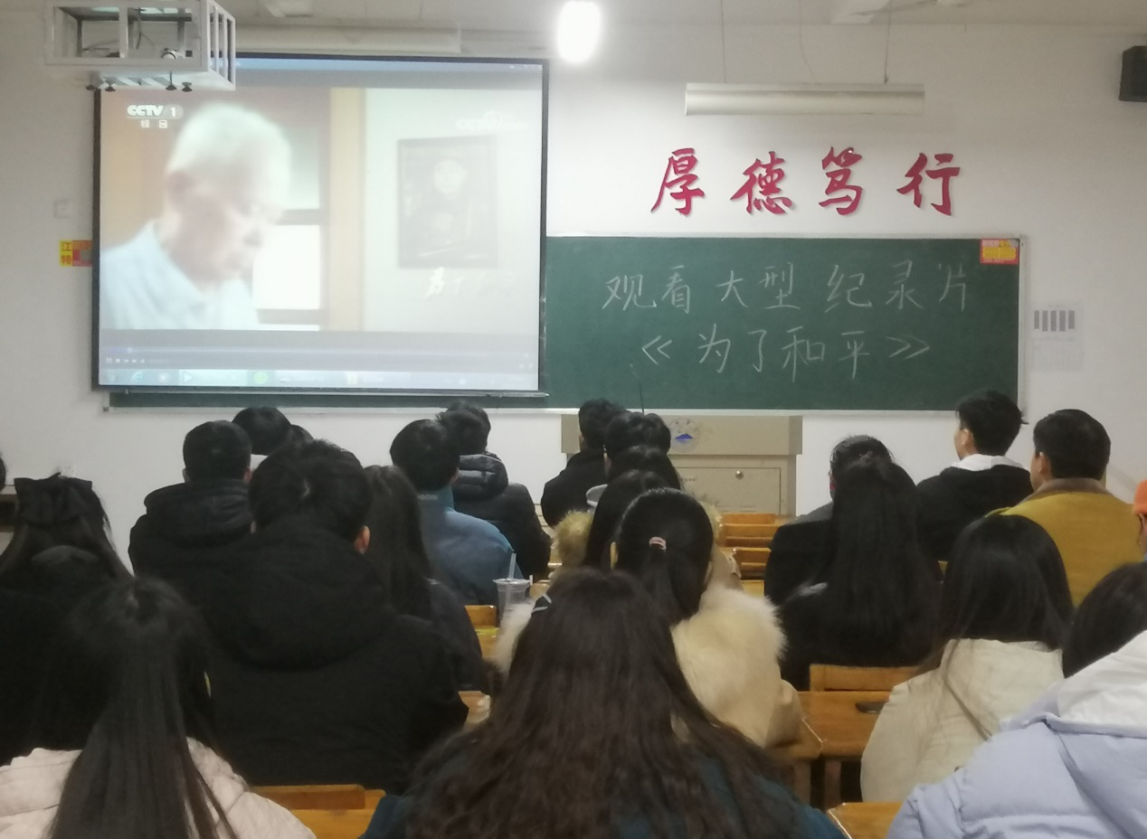 为深入贯彻落实习近平总书记在纪念中国人民志愿军抗美援朝出国作战70周年大会上的重要讲话精神,大力弘扬伟大的抗美援朝精神,加强新时代爱国主义教育,12月16日晚七点,计算机学院学生党支部于文友楼516教室组织党员和入党积极分子观看了大型电视纪录片《为了和平》。