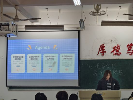 12月4日,william威廉中文于文友楼开展“‘电’亮安全灯,宿舍‘零’隐患”主题班会活动。此次活动由班级团支书,围绕宿舍用电安全展开讲解。班会过程中,团支书通过播放违规用电事故案例视频、展示宿舍安全隐患图片等形式,直观讲解私拉乱接电线、使用大功率违规电器的危害,明确宿舍用电“禁止清单”。同时,团支书分享了宿舍安全自查小技巧,插座老化、充电器长期不拔等常见隐患,引导同学们养成“人走断电”的良好习惯,让安全规范入脑入心。