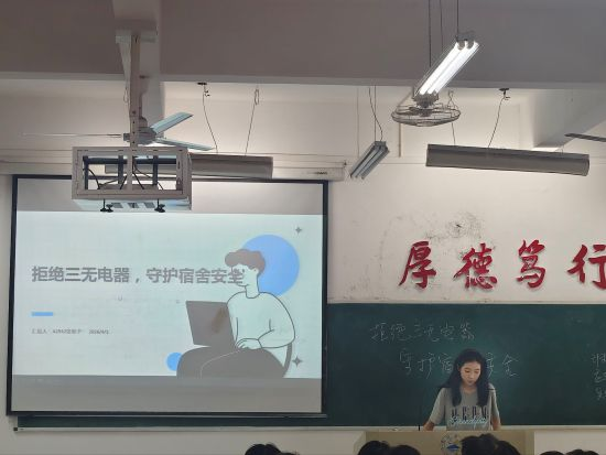 活动伊始,团支书围绕三无电器的核心特征、潜在风险及校园宿舍用电规范展开全面讲解。通过列举高校宿舍因使用三无电器、违规电器引发的火灾、触电等真实案例,结合图文与短视频形式,生动直观地展现了违规用电的严重危害,让同学们深刻意识到三无电器无生产日期、无质量合格证、无生产厂家的致命隐患,以及违规用电对自身和他人生命财产安全的威胁。