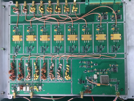 接下来进入课堂教学的部分,老师先发起签到,发布预习习题的答题情况,并对习题进行讲解,引入到射频电路的知识点——包括滤波器,低噪声放大器,功率放大器,混频器等电路,让学生注意区分,培养学生细致认真的学习态度;之后,通过观察学生的学习状态,如果学生进入疲倦状态,即可发起一系列教学活动,例如抢答、选人等,如果学生状态良好,即继续开展深度教学,继续下一个知识点的讲解,播放接收信号电路与发射信号电路的微课视频,展示如下图所示的实际射频电路工程产品。
