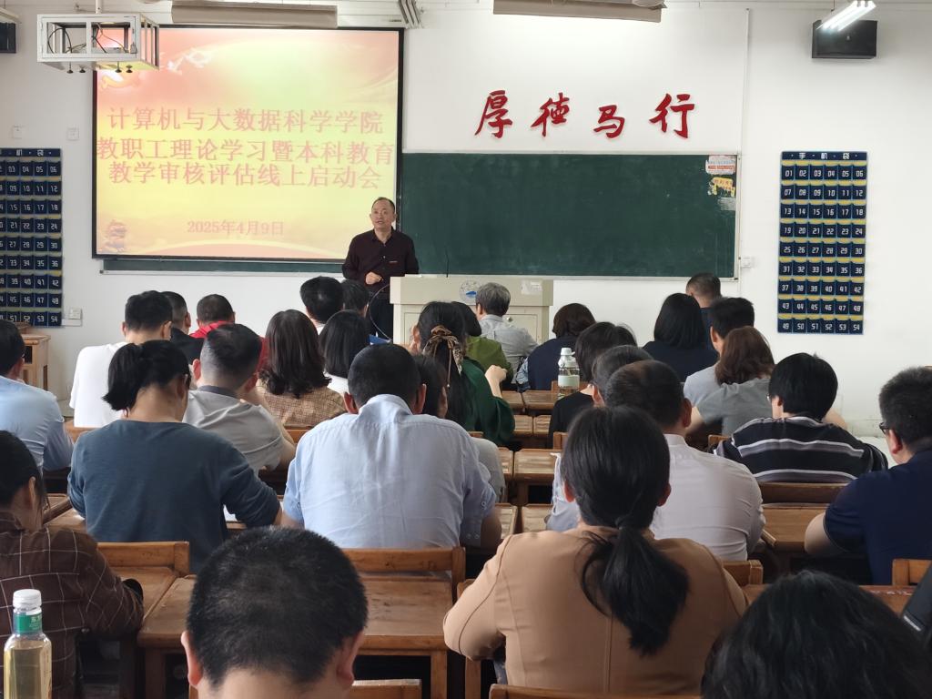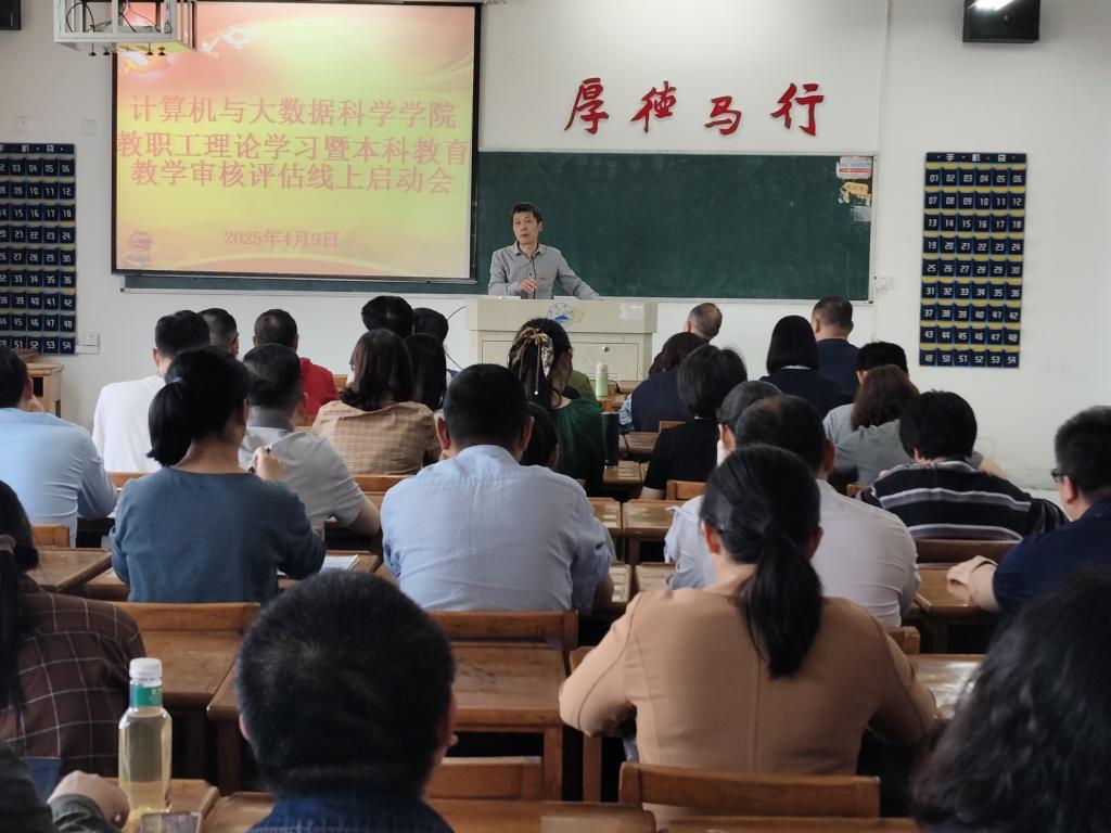 为切实做好新一轮本科教育教学审核评估线上评估各项准备工作,4月9日下午,学院在文友楼516召开线上评估启动会。学院全体教职工参加,会议由学院党委书记邹国辉主持。